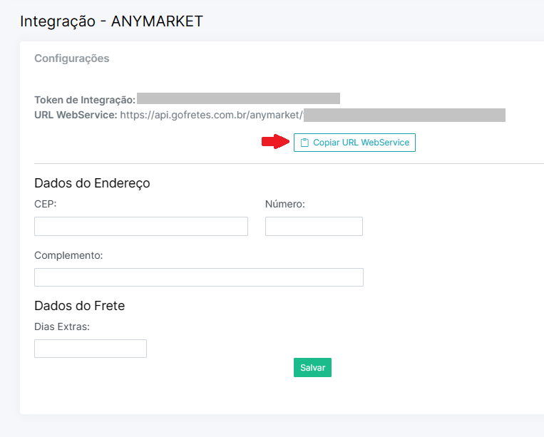 Preencha os dados de integração e copie a URL WebService