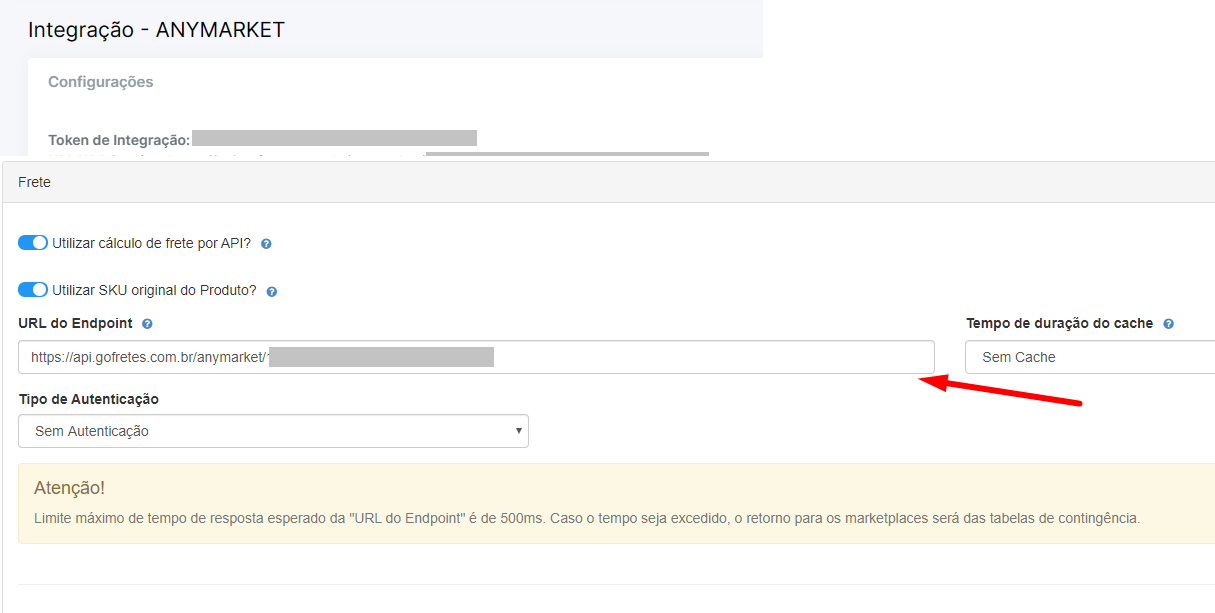Acesse a Anymarket e termine de configurar com a URL copiada