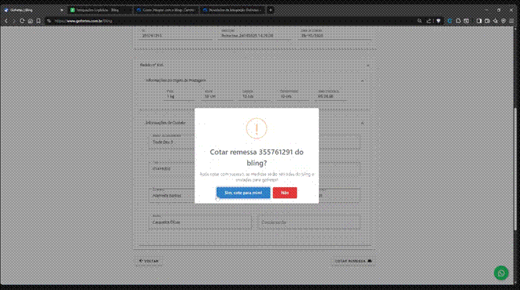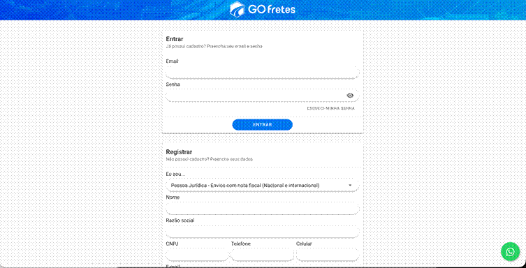 ⚠️ Ao lado das medidas, há um botão chamado “Obter cotação” — este é um botão nativo da plataforma e não é por aí que você terá a cotação GoFretes.