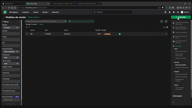 Acesse a sua conta da Bling! e inclua um novo pedido.