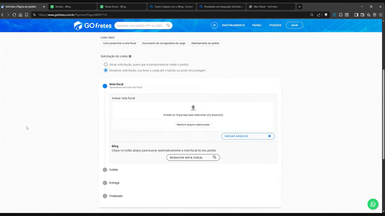 Após a instalação do aplicativo da GoFretes em sua conta Bling!, vamos aprender como gerar e importar o seu primeiro pedido.