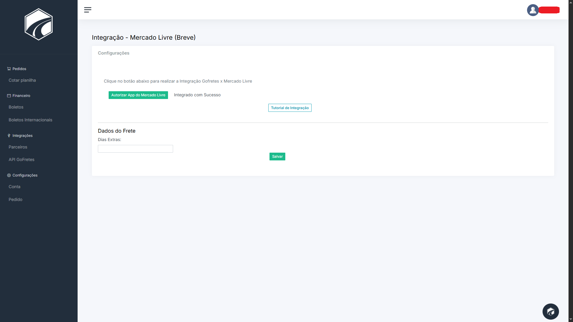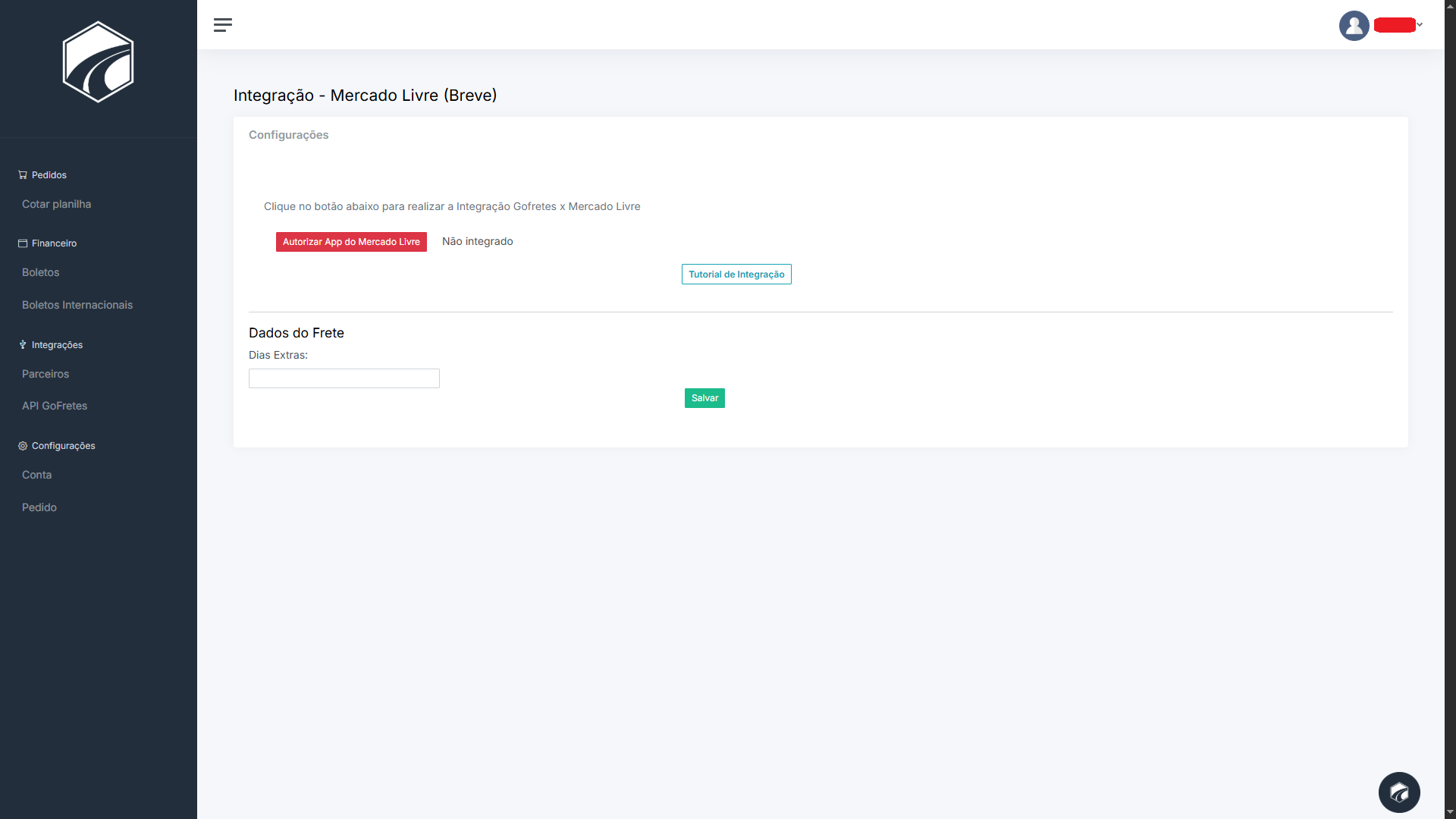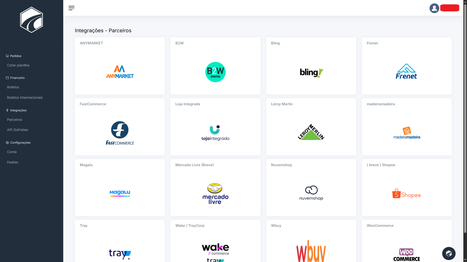 Entre no meu painel, vá até parceiros e clique em Mercado Livre.